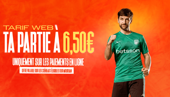Réserve ET paie ta partie uniquement en ligne via MyUrban, et profite d’un tarif ultra avantageux : seulement 6,50 € par joueur sur les créneaux éligibles.